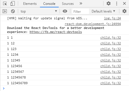 import React,{ useState} from 'react'; function Child(props){ let [txt,setTxt] = useState("1"); return { setTxt(target.value) }} /> } export default Child import React,{ useState,useRef} from 'react';function Child(props){ let [txt,setTxt] = useState("1"); let txtRef = useRef(txt); useEffect(()=>{ console.log(txtRef.current,txt); txtRef.current = txt; },[txt]); return { setTxt(target.value) }} />}export default Child import React,{ useState,useEffect,useRef} from 'react';function Child(props){ let [txt,setTxt] = useState("1"); let txtRef = useRef(txt); useEffect(()=>{ console.log(txtRef.current,txt); },[txt]); return { setTxt(target.value) }} />}export default Child 浏览器反馈